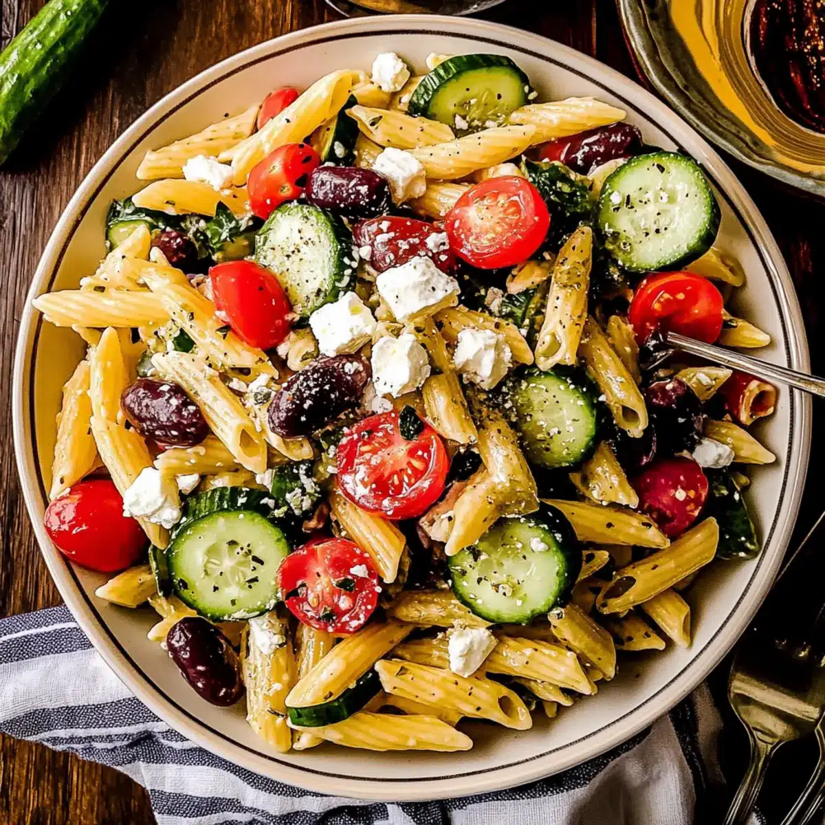 • Make Ahead Magic: This Mediterranean Pasta Salad can be prepared a day in advance—just add any delicate ingredients like cucumbers right before serving to keep them crisp.