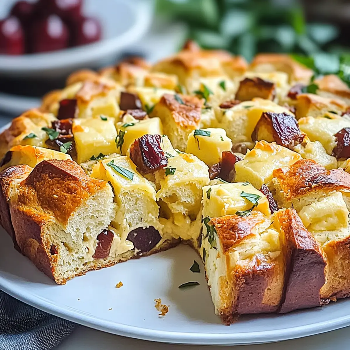 Begin layering the biscuit mixture and the filling ingredients in the prepared Bundt pan. Start with a layer of biscuit pieces followed by a generous layer of the filling, repeating the process until all ingredients are used. This layering creates a delightful surprise with every pull apart, marrying the flavors beautifully.