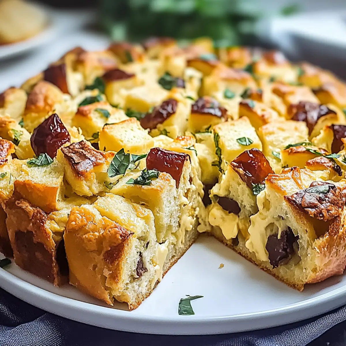 The delightful aroma of freshly baked Mediterranean Pull Apart Bread sets the perfect scene for a sumptuous meal filled with flavors that enchant the palate.
