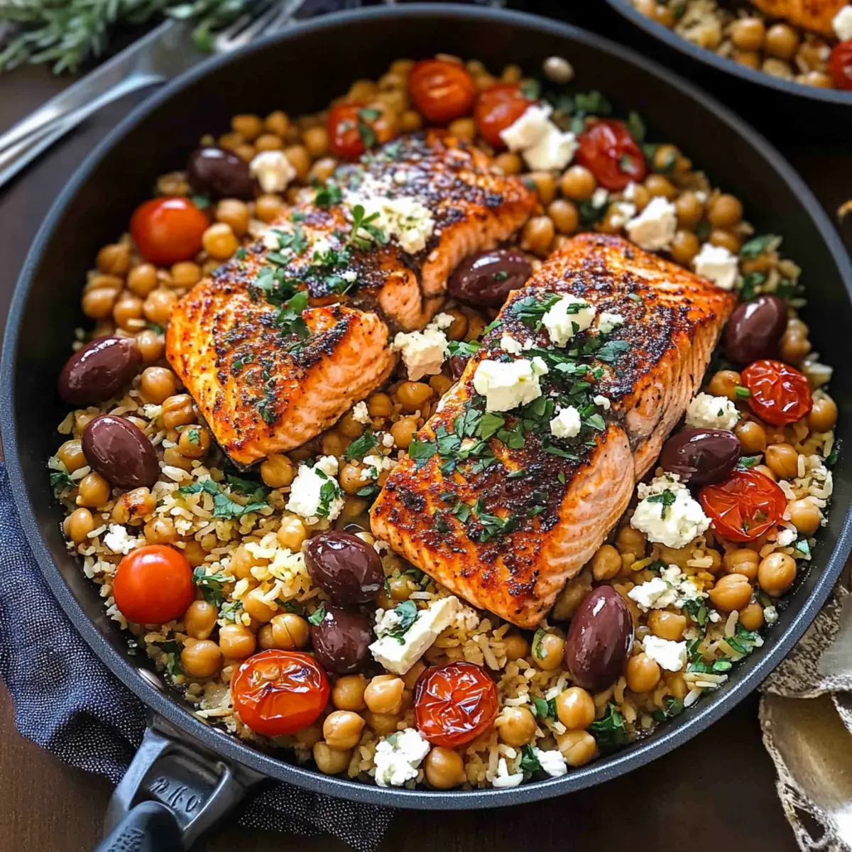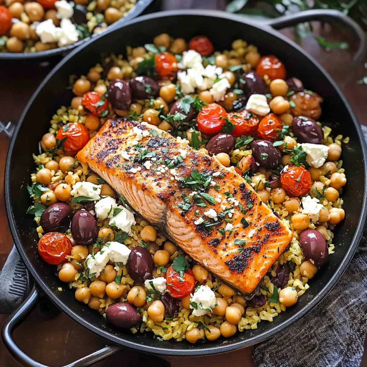 Wholesome Ingredients: Packed with omega-3-rich salmon, hearty chickpeas, and fresh veggies, this dish aligns perfectly with your health goals.