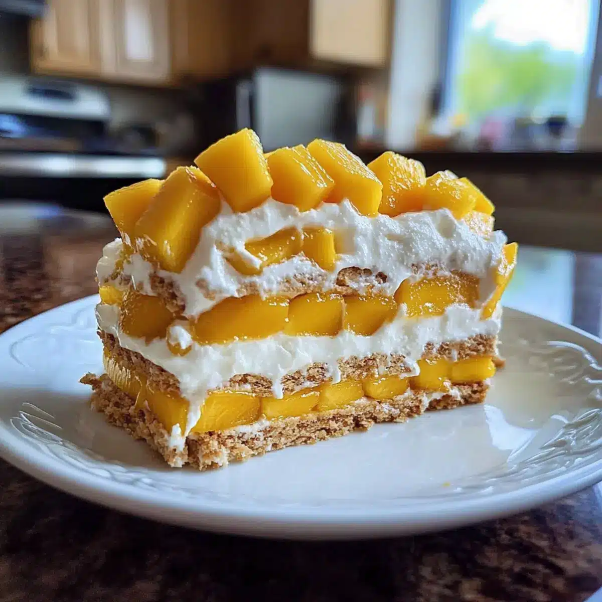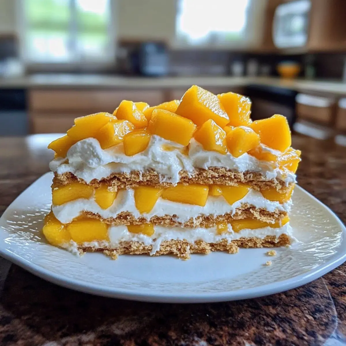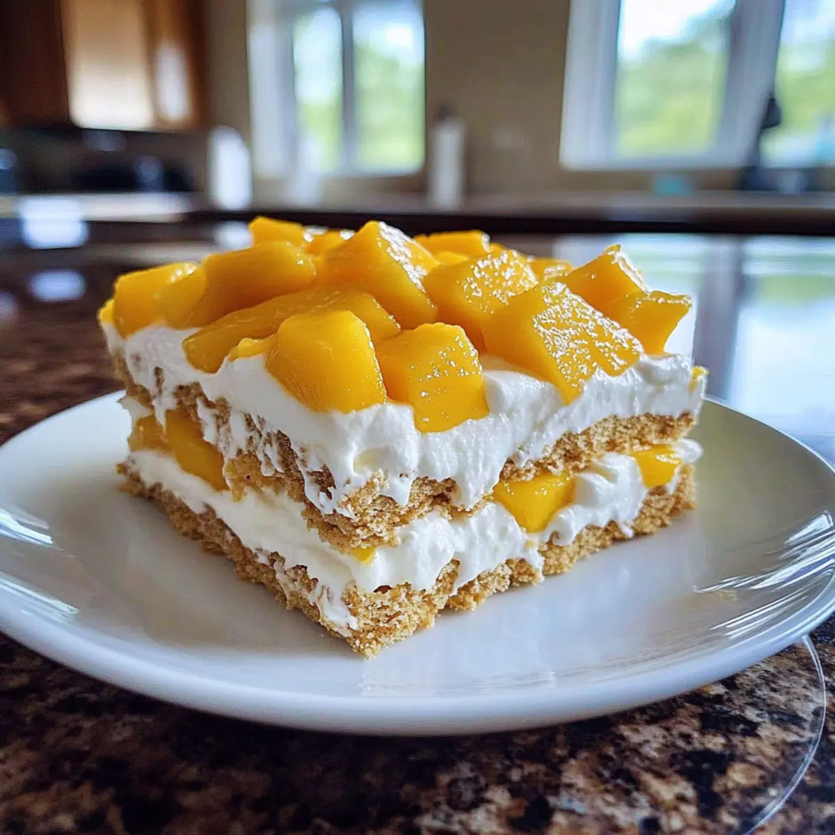 Grab a rectangular dish (about 8×8 inches) and start with a layer of graham crackers at the bottom. Next, spread a generous layer of cream mixture over the crackers, followed by a layer of fresh mango cubes. Repeat the layering process, ensuring to finish with a lovely layer of the cream mixture on top. This creates the beautiful structure of your No Bake Mango Float.