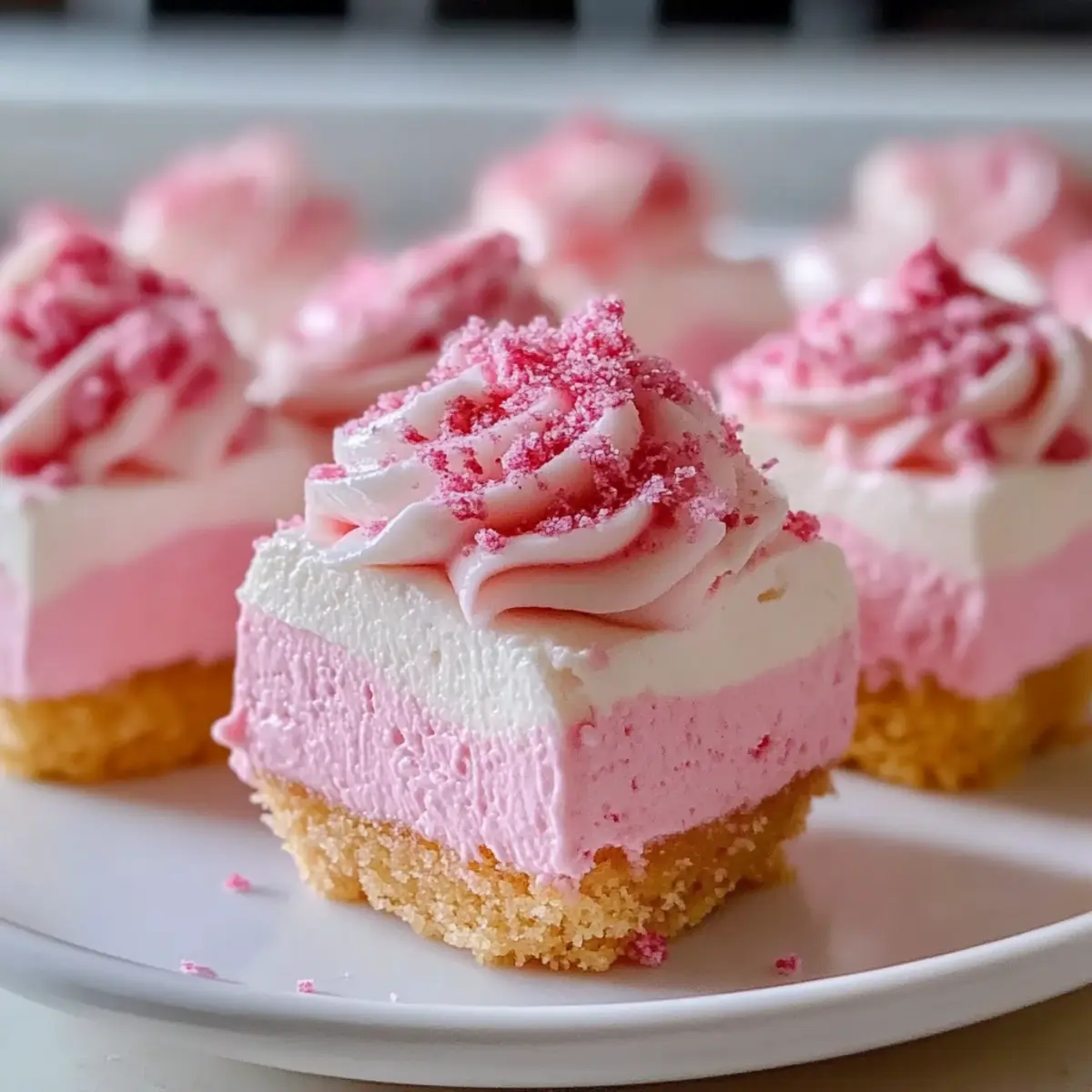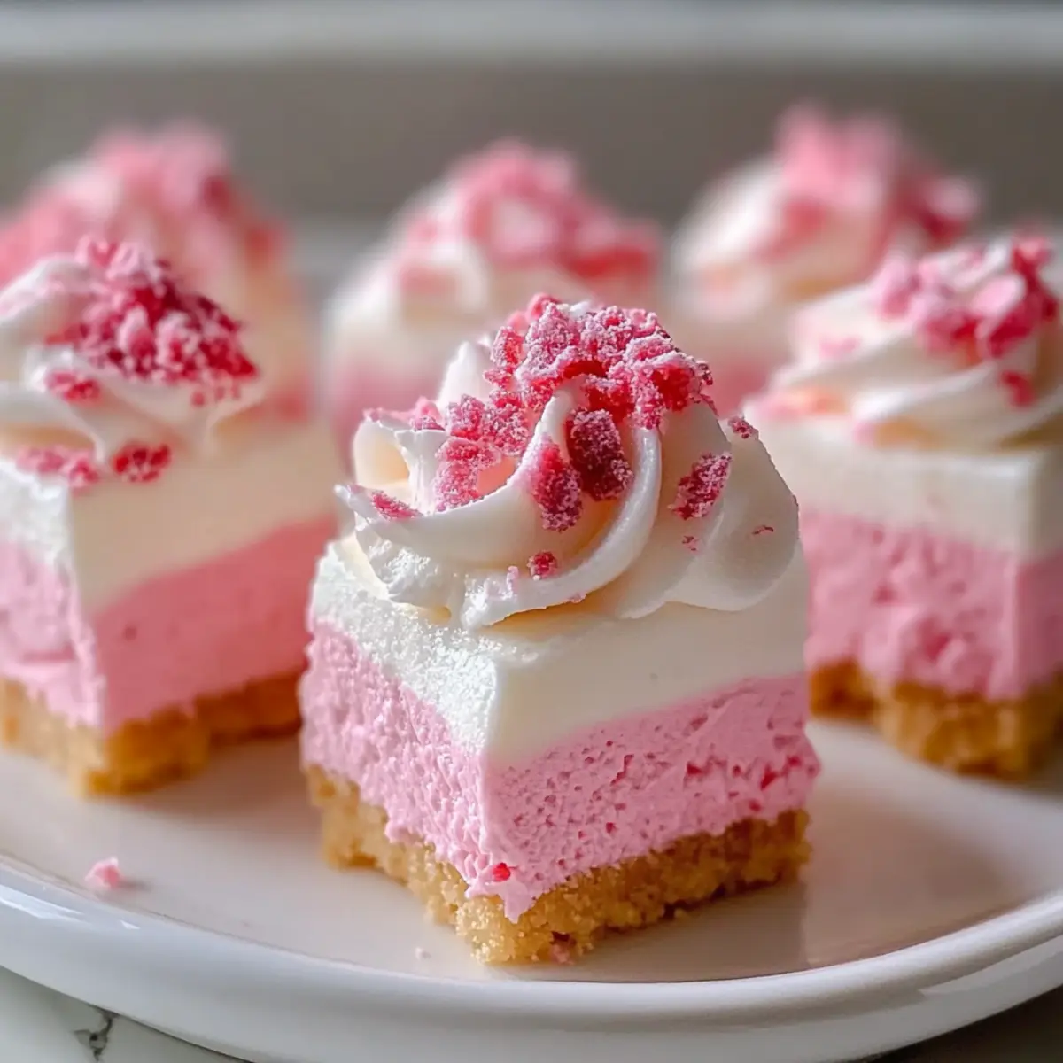 These No-Bake Pink Velvet Cheesecake Bites are perfect for busy home cooks looking to simplify meal planning! You can prepare the crust and the cheesecake filling up to 24 hours in advance. To do this, simply follow the first five steps of the recipe, then cover and refrigerate the filling until you’re ready to assemble. If prepared ahead, chill the bites for the recommended 4 hours before serving to ensure they have that ideal moussy texture. To maintain their delightful flavor and texture, store them in an airtight container in the refrigerator for up to 3 days. When ready to serve, cut them into bite-sized pieces and add your favorite toppings for a stunning presentation!