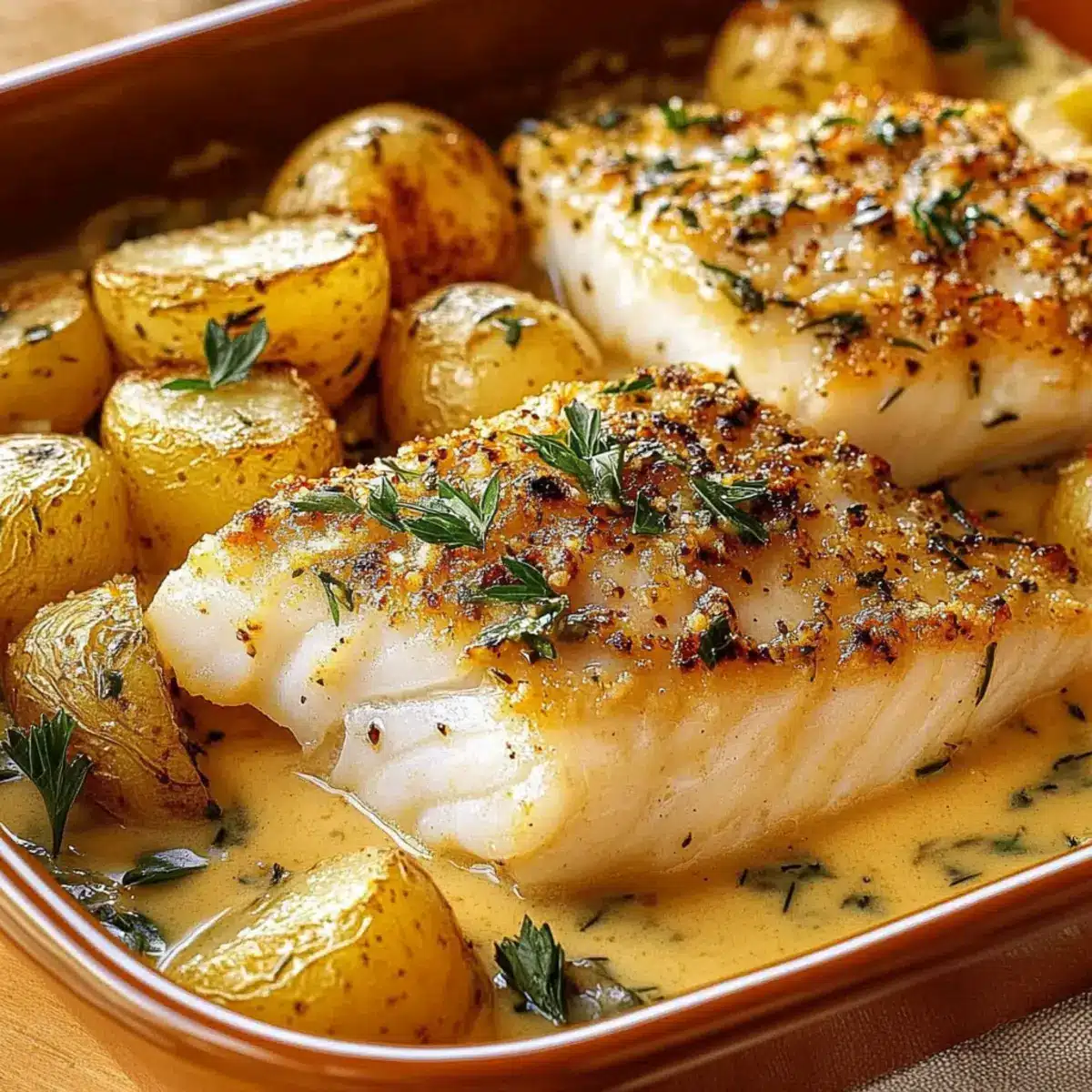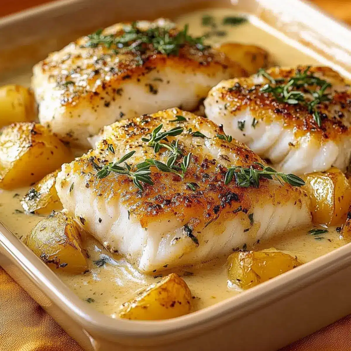 Pour in vegetable or chicken broth, scraping the bottom of the skillet to deglaze and release all those flavorful bits. Bring the mixture to a gentle simmer, then stir in the heavy cream and fresh rosemary. Season with salt and pepper to taste, allowing the sauce to thicken slightly—this rich base enhances the indulgence of the creamy potatoes and fish.
