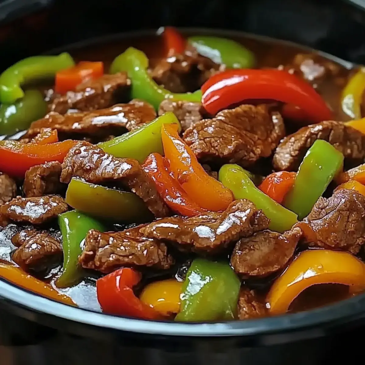 Cover the crock pot with its lid and set it to cook on low for 6-8 hours or on high for 3-4 hours. The longer, slower cooking will tenderize the beef beautifully, so if time allows, the low setting is preferred. You’ll know it’s done when the beef is fork-tender and the bell peppers are soft. The enticing aroma will make your kitchen feel like a warm hug!