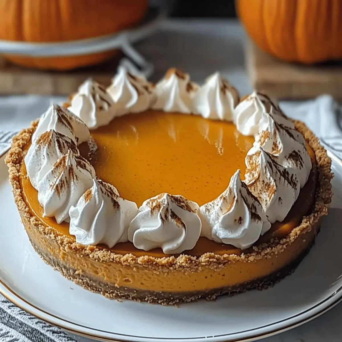 As the leaves turn golden and a crispness fills the air, I find myself craving the comforting flavors of fall. This Pumpkin Pie Cheesecake is my go-to dessert that beautifully marries the rich, spiced essence of traditional pumpkin pie with the smooth, creamy indulgence of cheesecake. Not only is it a crowd-pleaser perfect for gatherings, but it’s also surprisingly simple to make—ideal for both seasoned chefs and kitchen newbies! Plus, with a few easy swaps, you can customize it to be gluten-free, ensuring everyone can enjoy a slice. Curious to know how to create this stunning centerpiece that will have your friends and family begging for seconds? Let’s dive in!