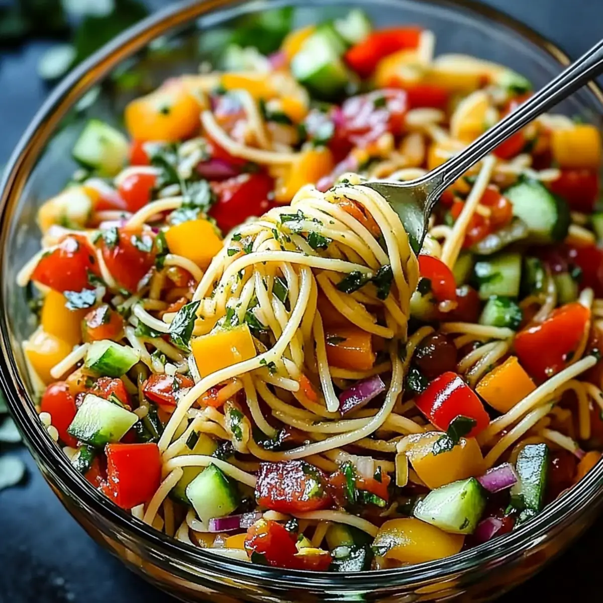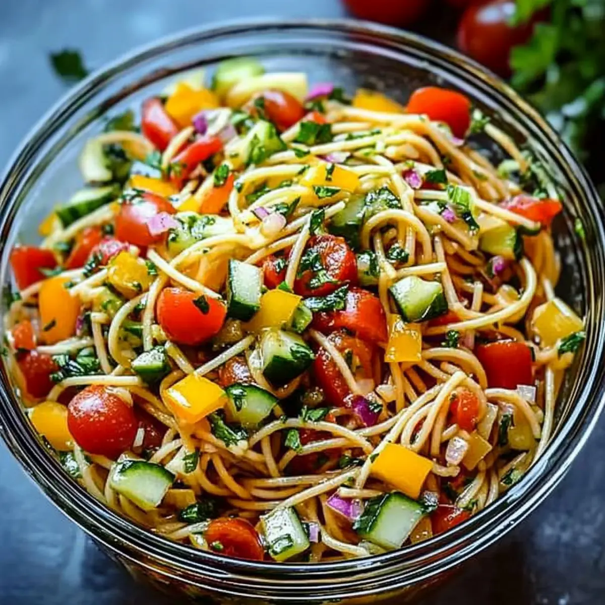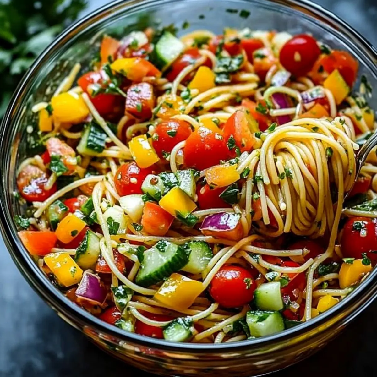 Enjoy crafting your Quick Spaghetti Salad With Italian Dressing, bursting with flavor and freshness!