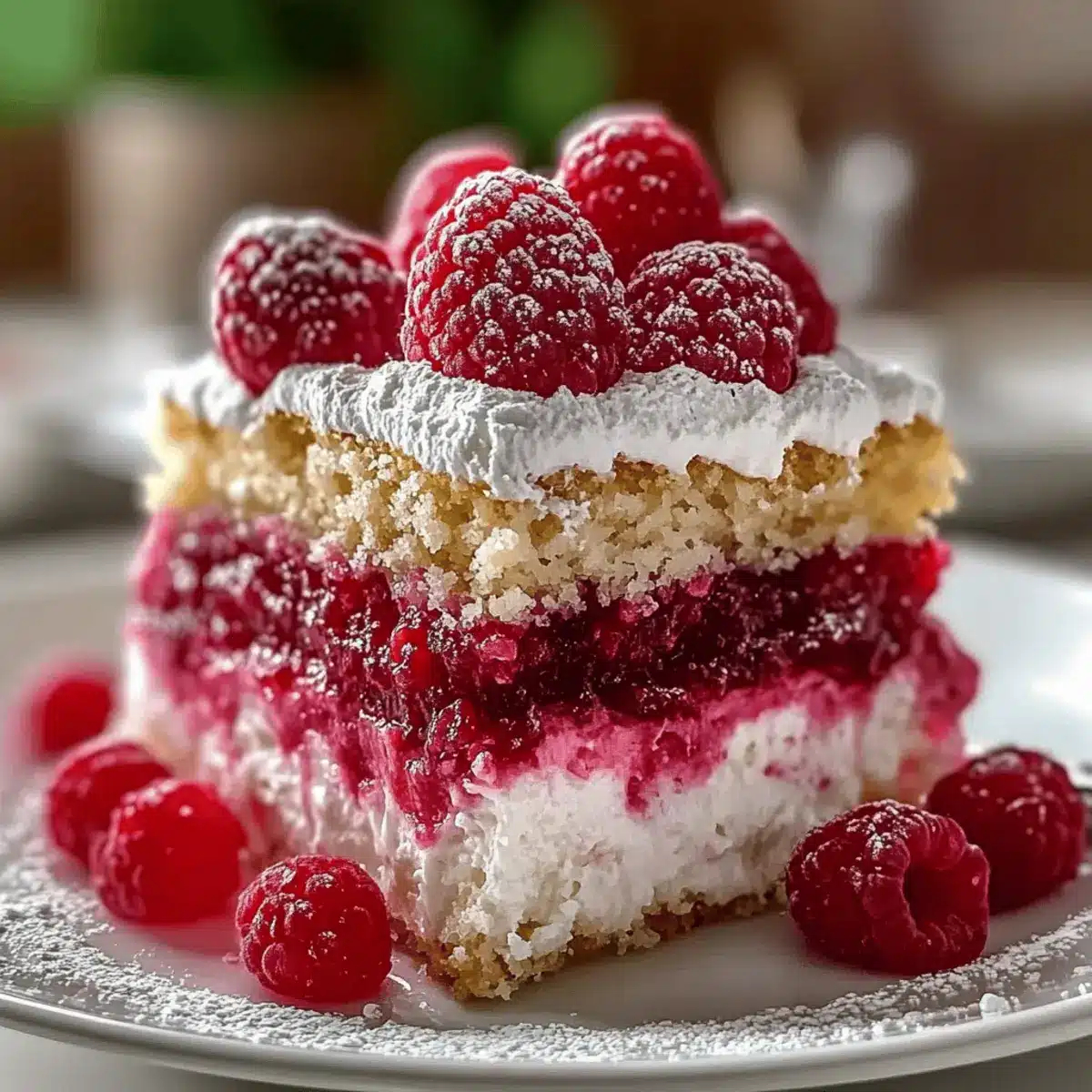 Reheating: This cake is best served chilled, so avoid reheating. Just slice and enjoy the delightful layers of fresh raspberry and coconut!
