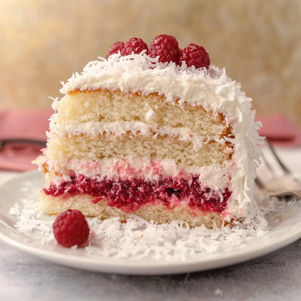 Delightful Layers: Each bite offers a moist coconut crumb that perfectly balances with layers of tangy raspberry filling. It’s like a vacation for your taste buds!