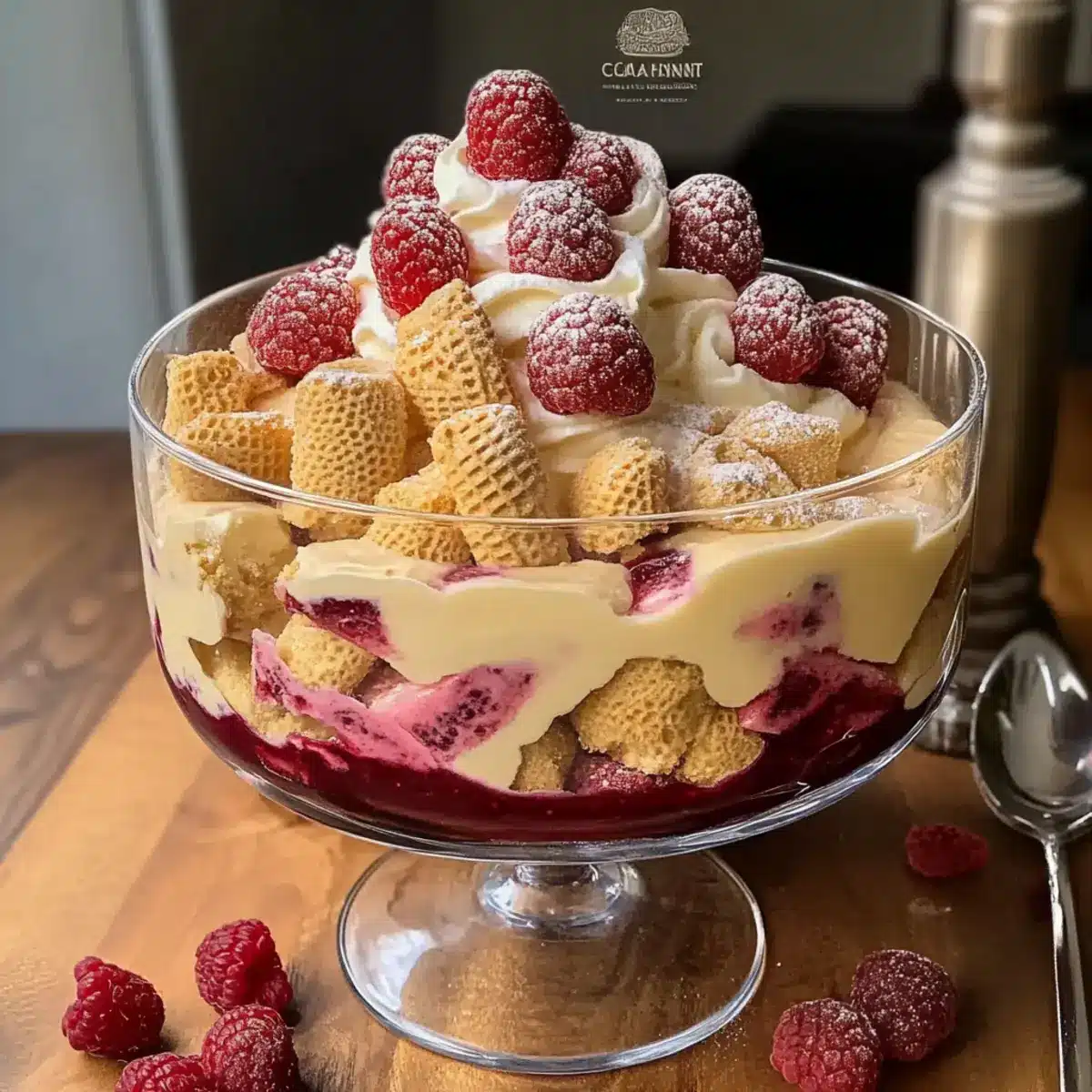 - Select a trifle dish or a large glass bowl. Start layering by placing a generous layer of Nilla wafers along the bottom, followed by a layer of the vanilla cardamom custard. Spoon on a layer of rhubarb compote, then scatter fresh raspberries for extra color and flavor. Repeat the layering process, finishing with the custard on top. Take a moment to smooth the top for a beautiful finish.