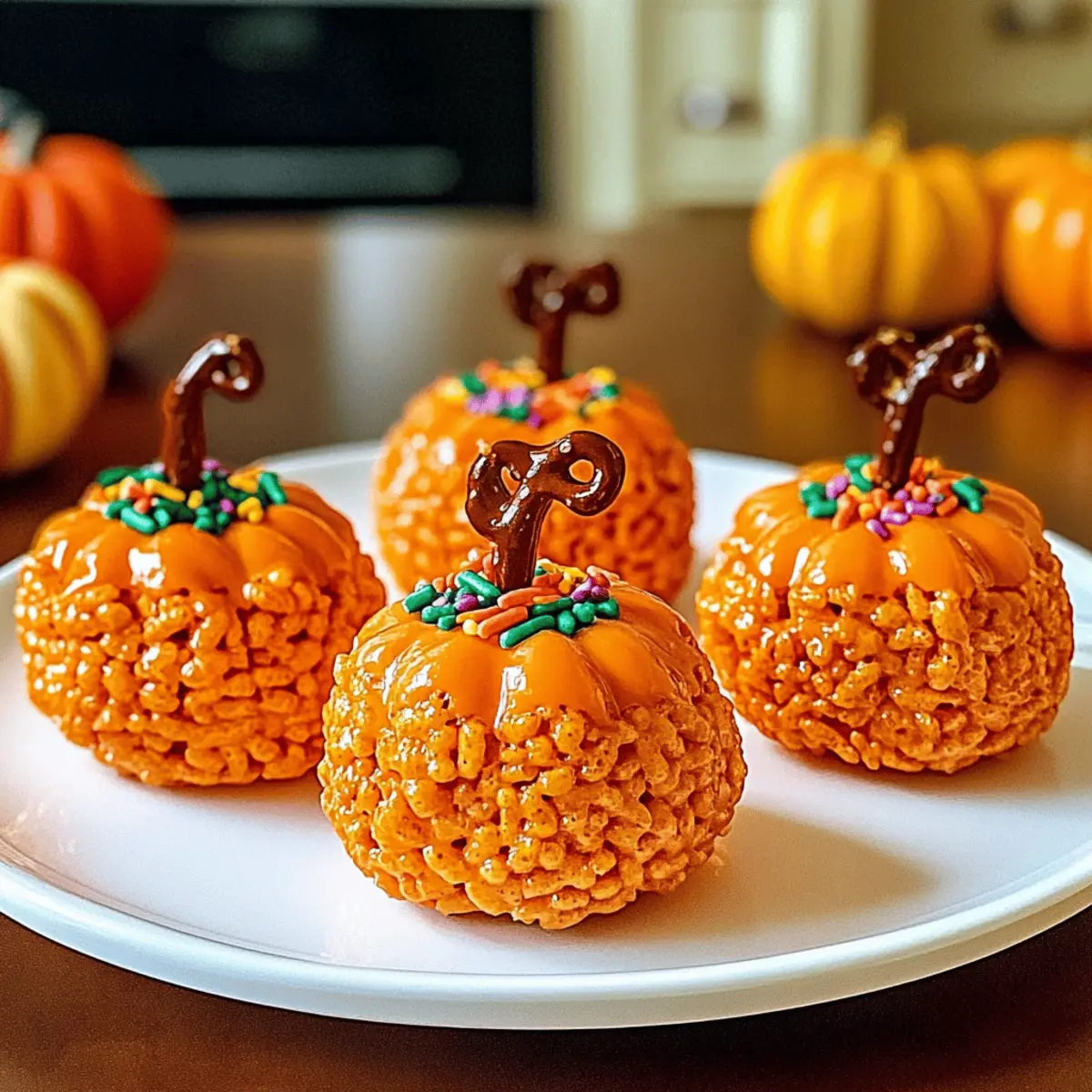 Get ready to whip up these charming Rice Krispie Treat Pumpkins for your Halloween festivities!
