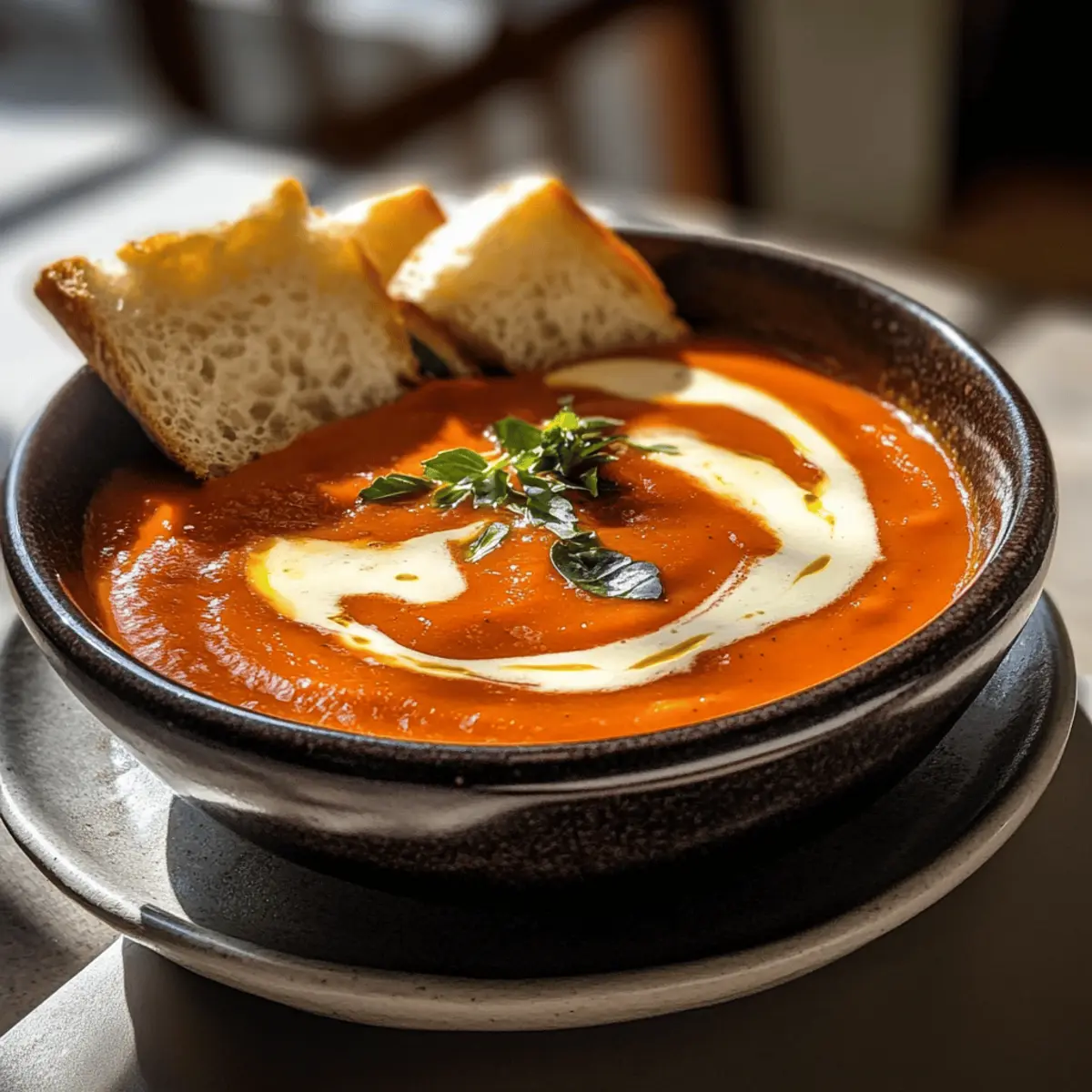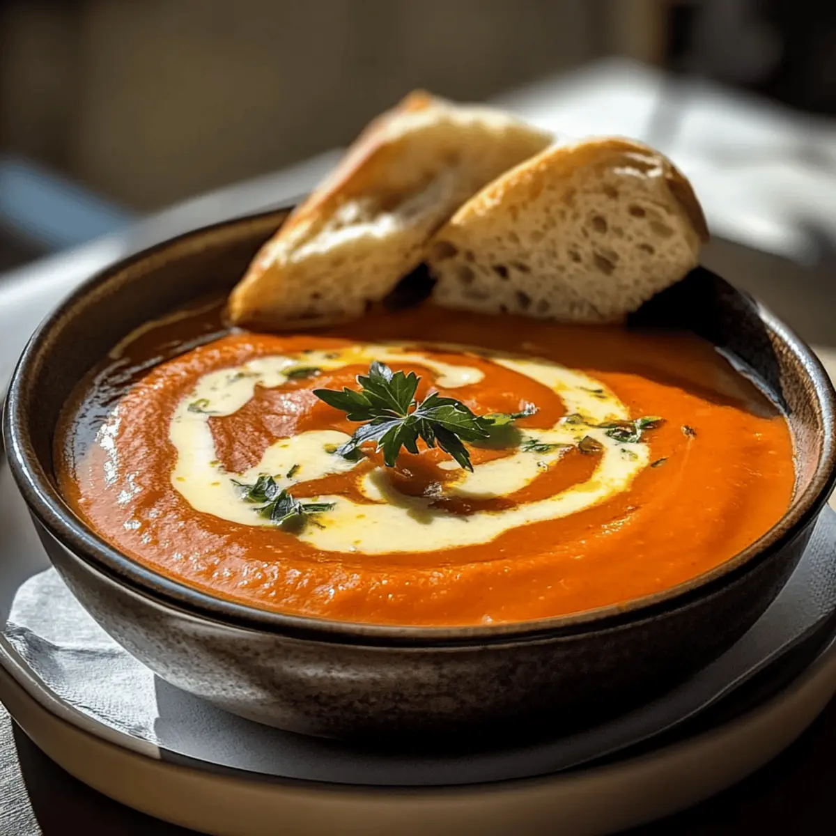 Cozy Delights: This Roasted Red Pepper Gouda Soup promises warmth and comfort, perfect for chilly evenings.