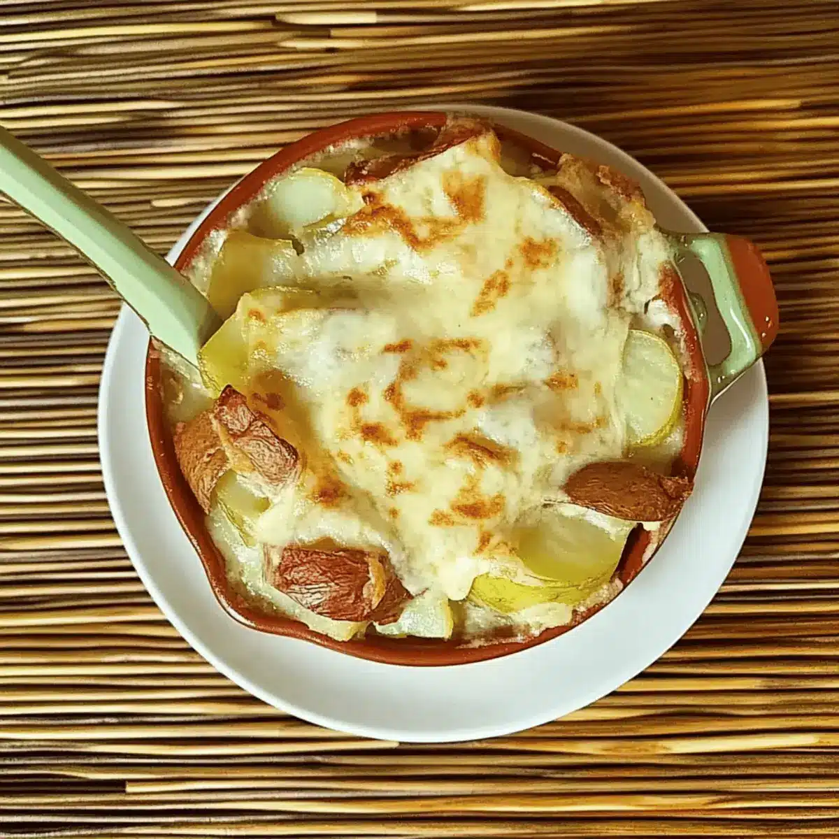 Grate a generous amount of Gouda cheese and sprinkle it liberally over the layered vegetables in the baking dish. The cheese will melt beautifully, creating a luscious, gooey top that contrasts perfectly with the tender layers below. Make sure to cover the entire surface for that cheesy goodness in every bite!