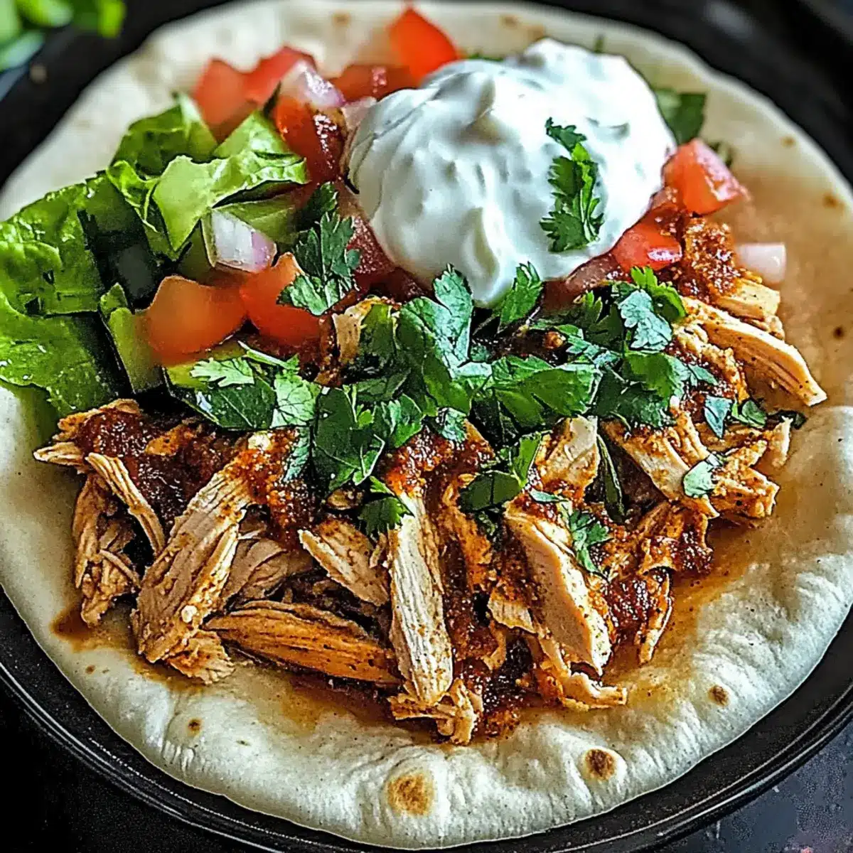 - Serve and Enjoy: Warm flatbreads, fill with shredded chicken, and top with garnishes.