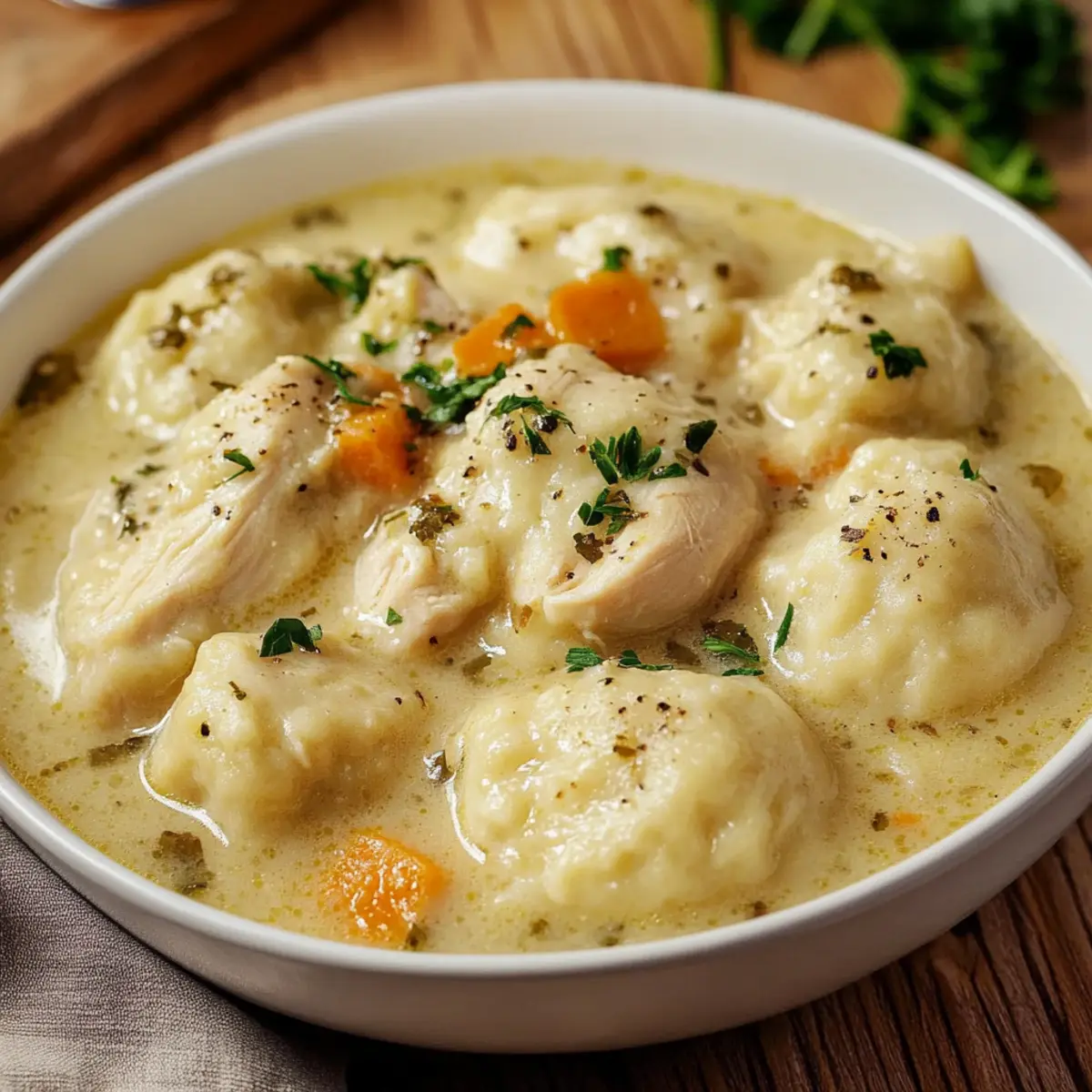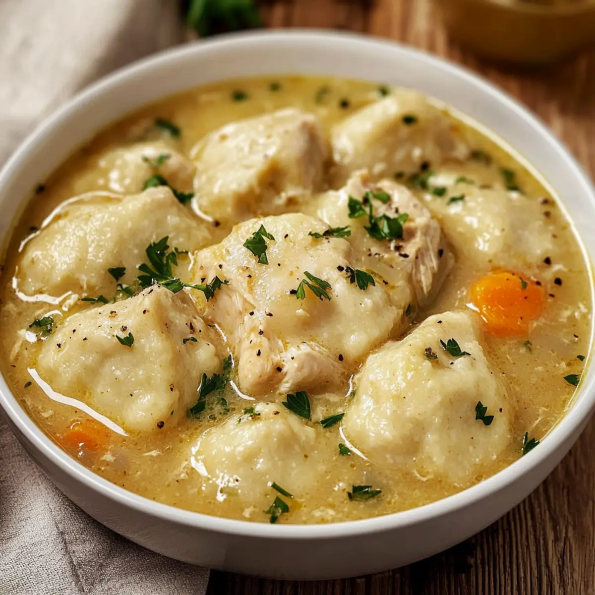 - Ladle into bowls, ensuring plenty of broth and dumplings. Garnish with fresh parsley if desired. Serve warm.