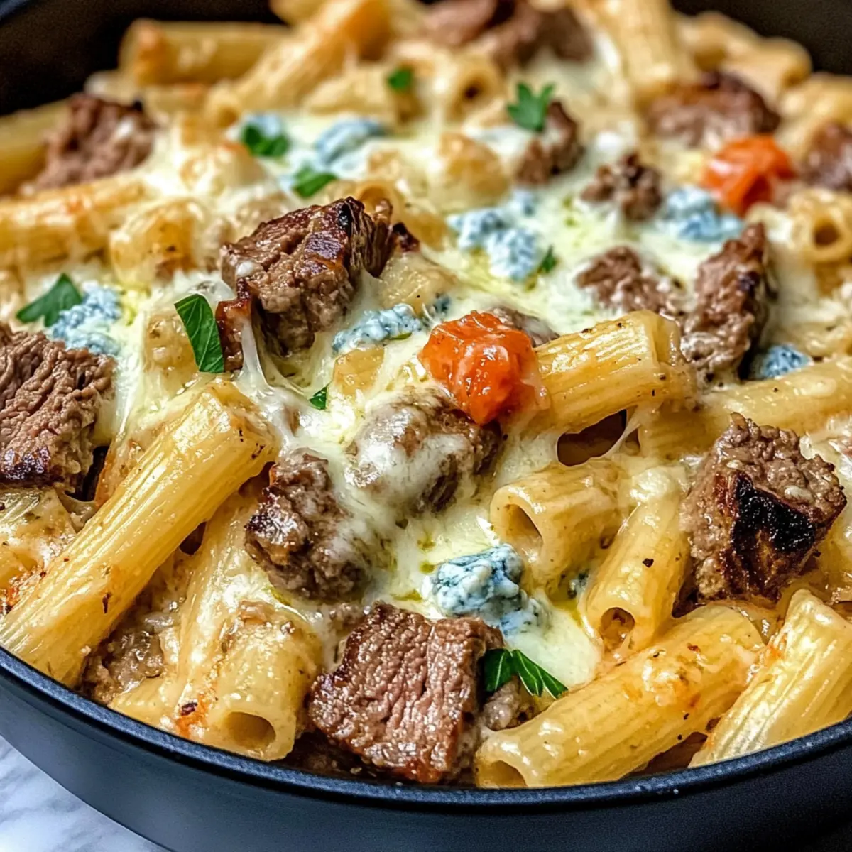Let It Rest: After searing the steak, allow it to rest for a few minutes. This step helps the juices redistribute, making the meat juicier in your Steak & Blue Cheese Rigatoni Bake.