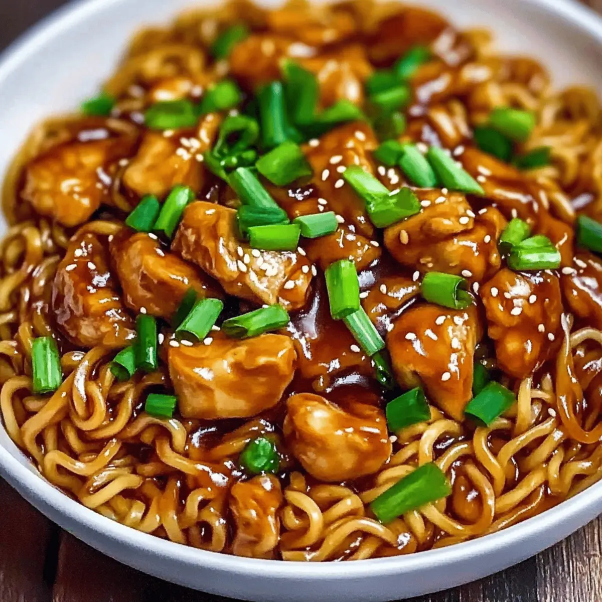 Once everything is well combined and heated through, remove the pan from heat. Serve your Sticky Garlic Chicken Noodles hot, garnished with a generous sprinkle of chopped green onions and sesame seeds for an extra pop of flavor and color. Serve immediately and enjoy a comforting dinner!