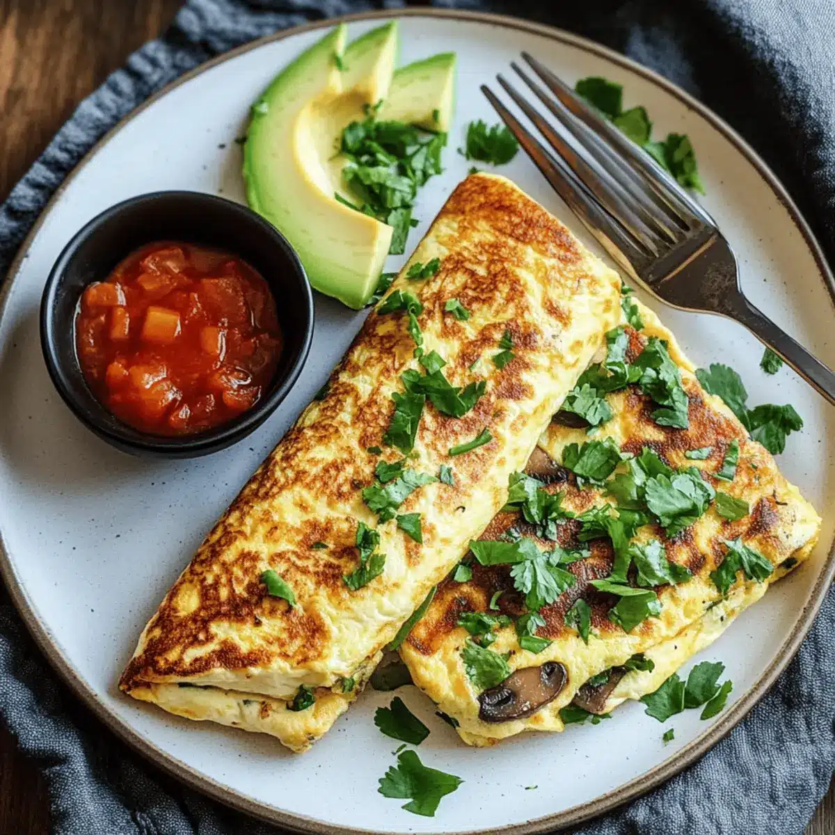 Fresh Tomato Salad: A bright and zesty salad topped with herbs adds a refreshing crunch that cuts through the savory richness of the omelette.