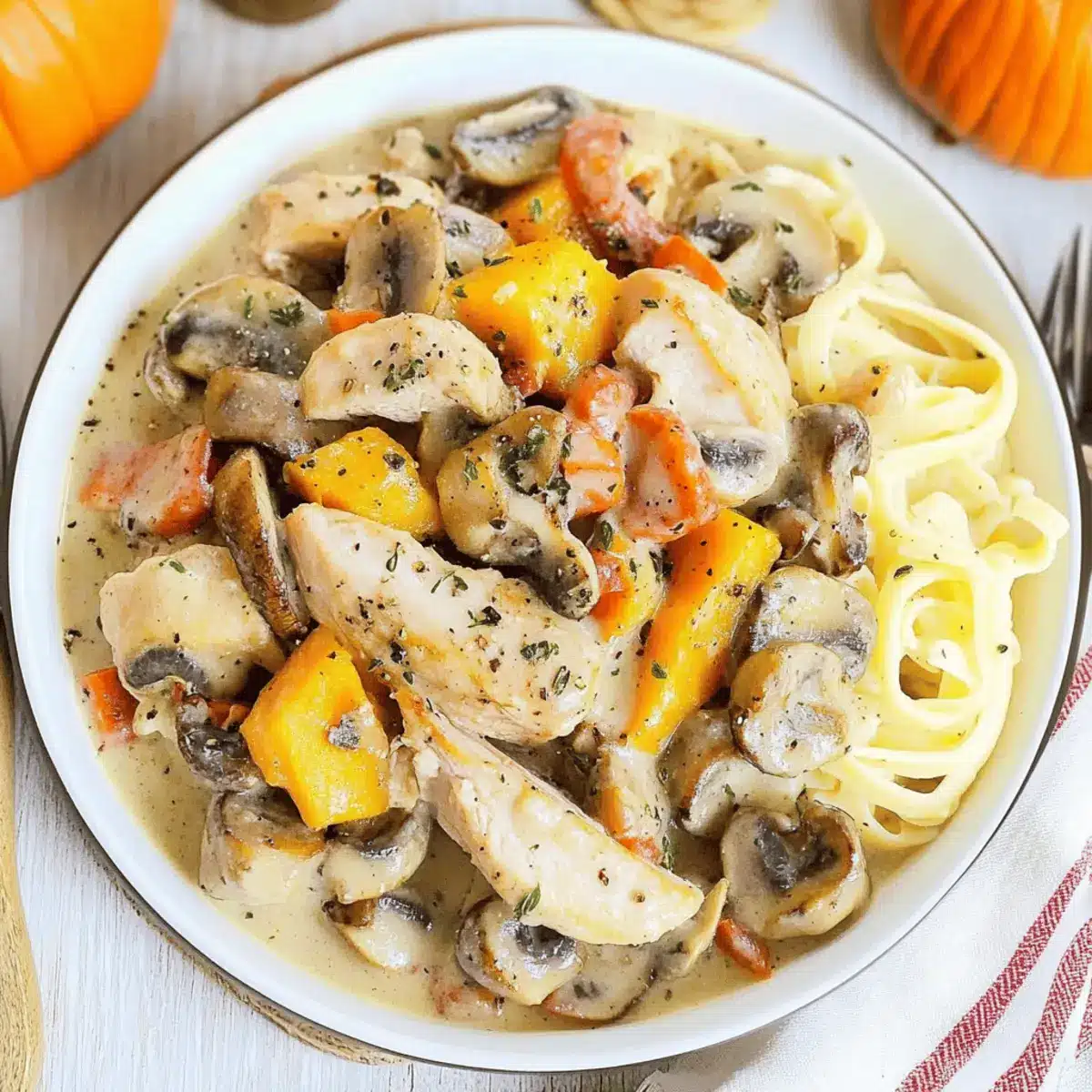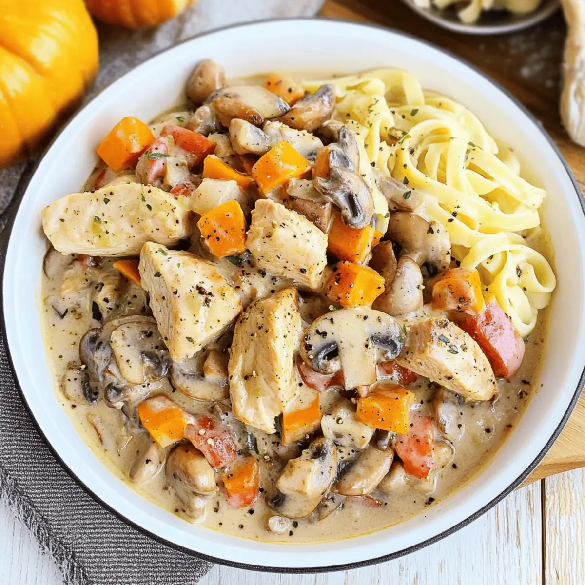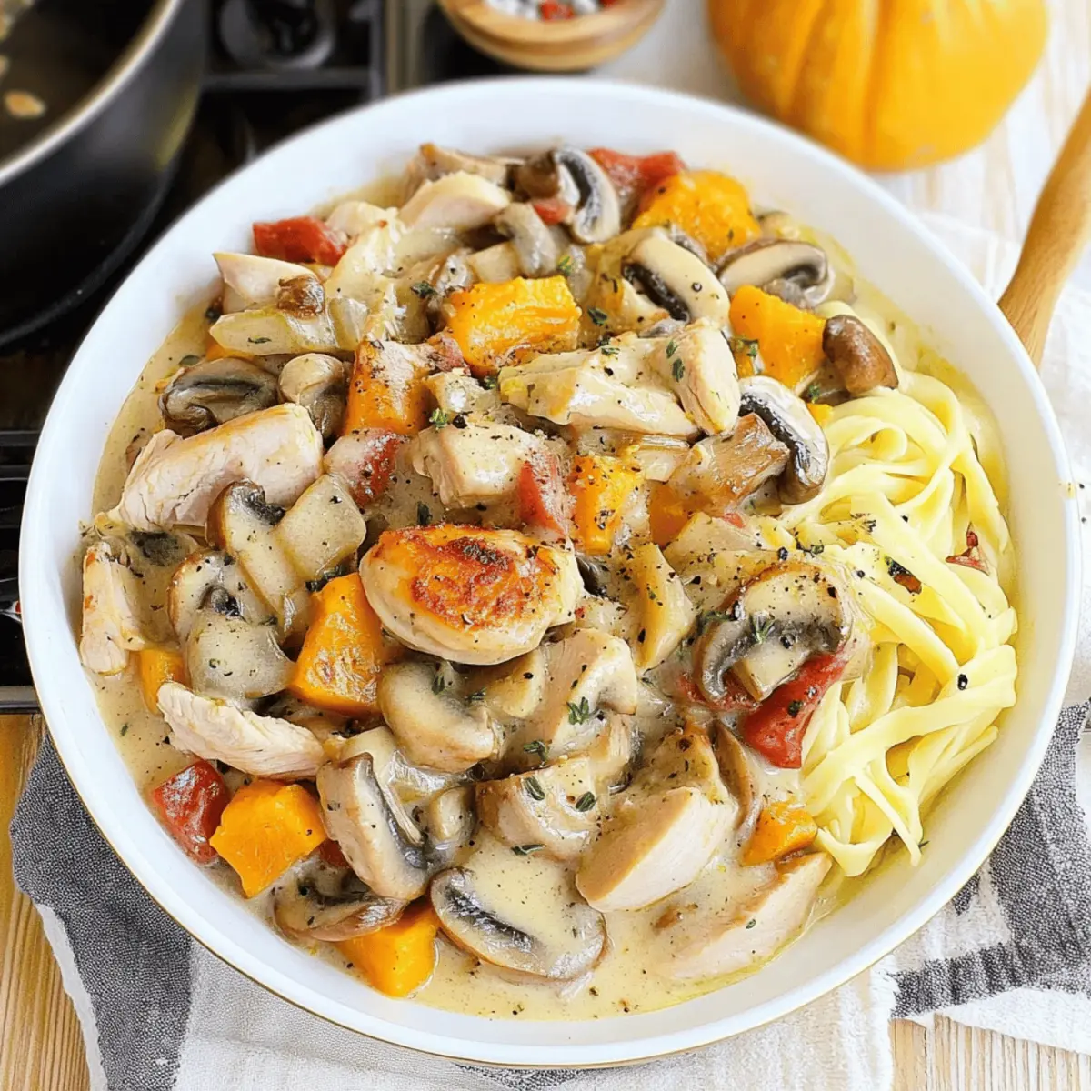 Rich Creaminess: The creamy sauce envelops tender turkey and pumpkin, making each bite a delightful experience.