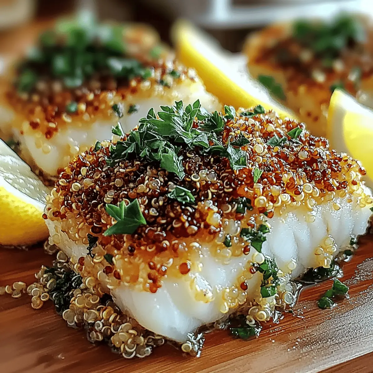 These Zesty Crunch Garlic Lemon Cod fillets are perfect for meal prep and can help streamline your busy weeknights! You can marinate the cod fillets in the garlic lemon mixture up to 24 hours in advance, allowing the flavors to penetrate deeply for a taste experience that’s just as delightful when cooked. Additionally, prepare the crunchy quinoa crust mixture and store it in the refrigerator for up to 3 days. To maintain the quality, keep the crust in an airtight container and combine it fresh when you’re ready to cook. When you’re set to enjoy this dish, simply press the crust onto the marinated cod and bake as instructed, achieving that crispy, golden perfection effortlessly!