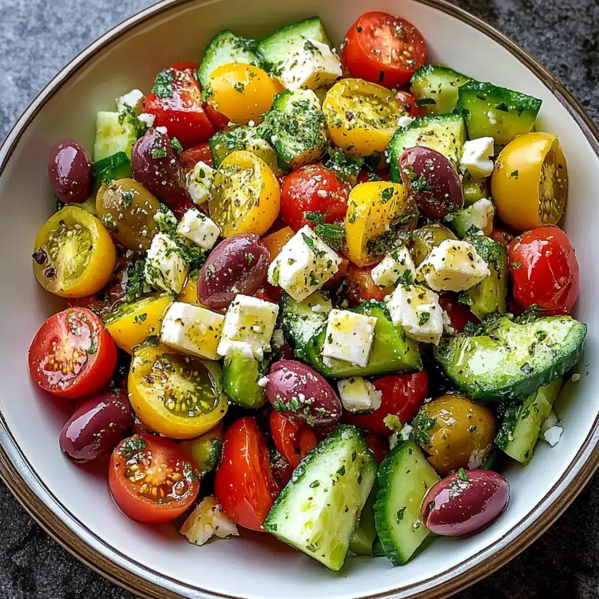 Crowd-Pleasing Appeal: This salad’s colorful presentation and rich Mediterranean flavor make it a sure hit at any gathering, ensuring your friends and family go back for seconds!